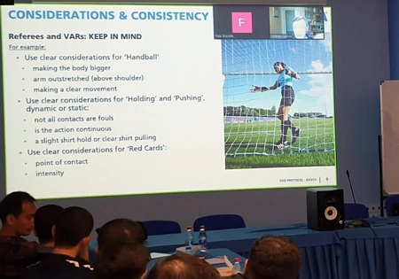 "Report" AFFA-nın rəsmi saytına istinadən xəbər verir ki, FIFA-nın təlimatçısı Valentin İvanov ZOOM platforması üzərindən təlimə qoşularaq VAR (Video köməkçi hakim) protokolunun tətbiqi sahəsində hakimləri məlumatlandırıb. Oyunlardan videogörüntülər nümayiş etdirilərək VAR-ın hansı epizodlarda, hansı qayda pozuntularında və nə zaman müdaxilə etməli olduğunu iclas iştirakçılarının diqqətinə çatdırılıb.