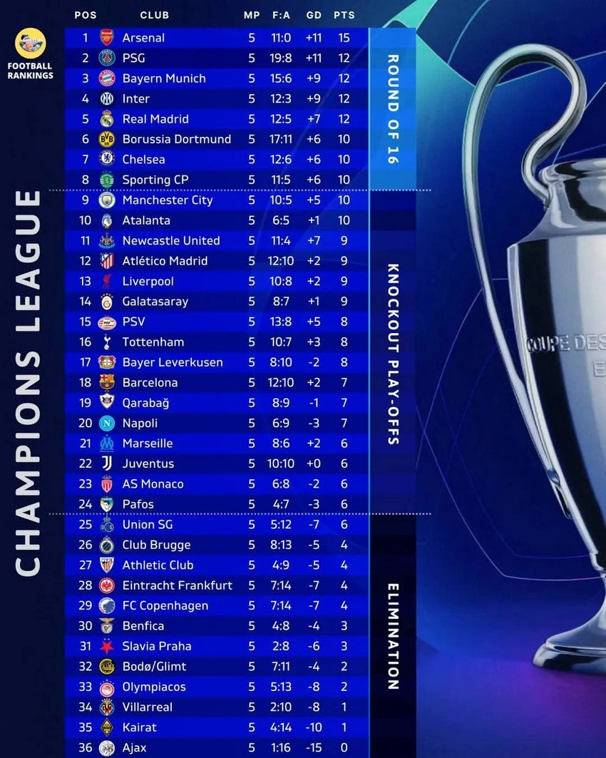UEFA Çempionlar Liqasının Liqa mərhələsində V tura yekun vurulub.