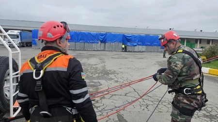 Fövqəladə Hallar Nazirliyi Şimal Regional Mərkəzinin struktur bölmələrinin xilasetmə dəstələri ilə birgə "Qafqaz Konserv Zavodu" MMC-də istehsalat qəzaları zamanı xilasetmə işinin təşkili mövzusunda taktiki-xüsusi təlim keçirilib.