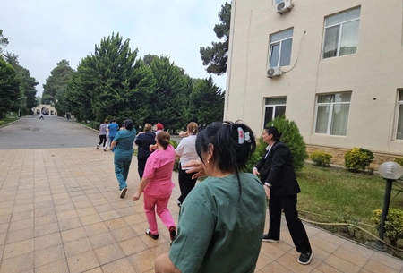 Əvvəlcə, təlimin nəzəri hissəsində FHN-in əməkdaşları tərəfindən xəstəxananın kollektivinə fövqəladə hallar, o cümlədən yanğınlar zamanı zəruri davranış qaydaları, təxliyə tədbirləri barədə ətraflı məlumat verilib, bu barədə videoçarxlar nümayiş etdirilib.