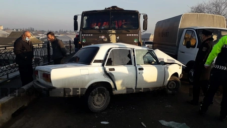 Kürdəmir rayon sakini, 42 yaşlı Cavadov Xaliq Durmuş oğlunun idarə etdiyi “KaMAZ” markalı yük maşını körpünün üzərində hərəkətdə olarkən qarşı tərəfdən gələn, 29 yaşlı Quliyev Ərzuman İlqar oğlunun idarə etdiyi “VAZ-2107” markalı avtomobillə toqquşub. Nəticədə “VAZ-2107”in sürücüsü və sərnişini, 53 yaşlı Quliyev İlqar Səməd oğlu elə hadisə yerindəcə dünyasını dəyişiblər.
