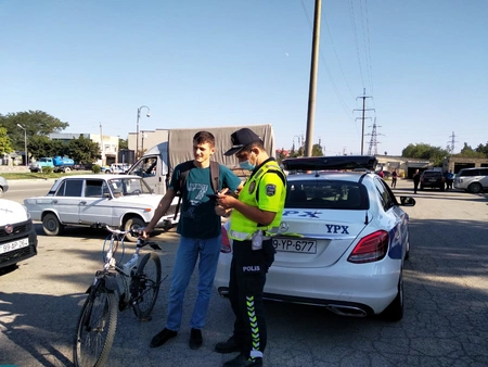 Keçirilən reyd zamanı həmçinin, avtomobil yollarında hərəkət edərək qəza şəraiti yaradan velosipedçilər saxlanılıb.
