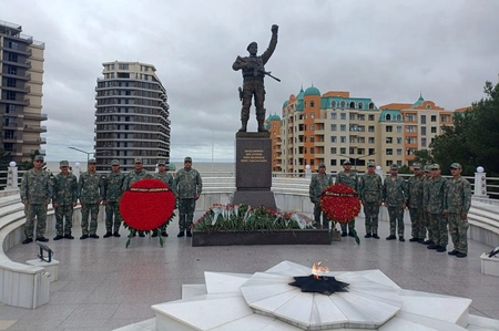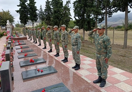 Silsilə tədbirlər çərçivəsində Şəhidlər xiyabanlarını ziyarət edən hərbi qulluqçular şəhid məzarlarının üzərinə gül qoyaraq Azərbaycan Respublikasının azadlığı, ərazi bütövlüyü və suverenliyi uğrunda canlarından keçən əziz soydaşlarımıza öz ehtiramlarını ifadə ediblər.