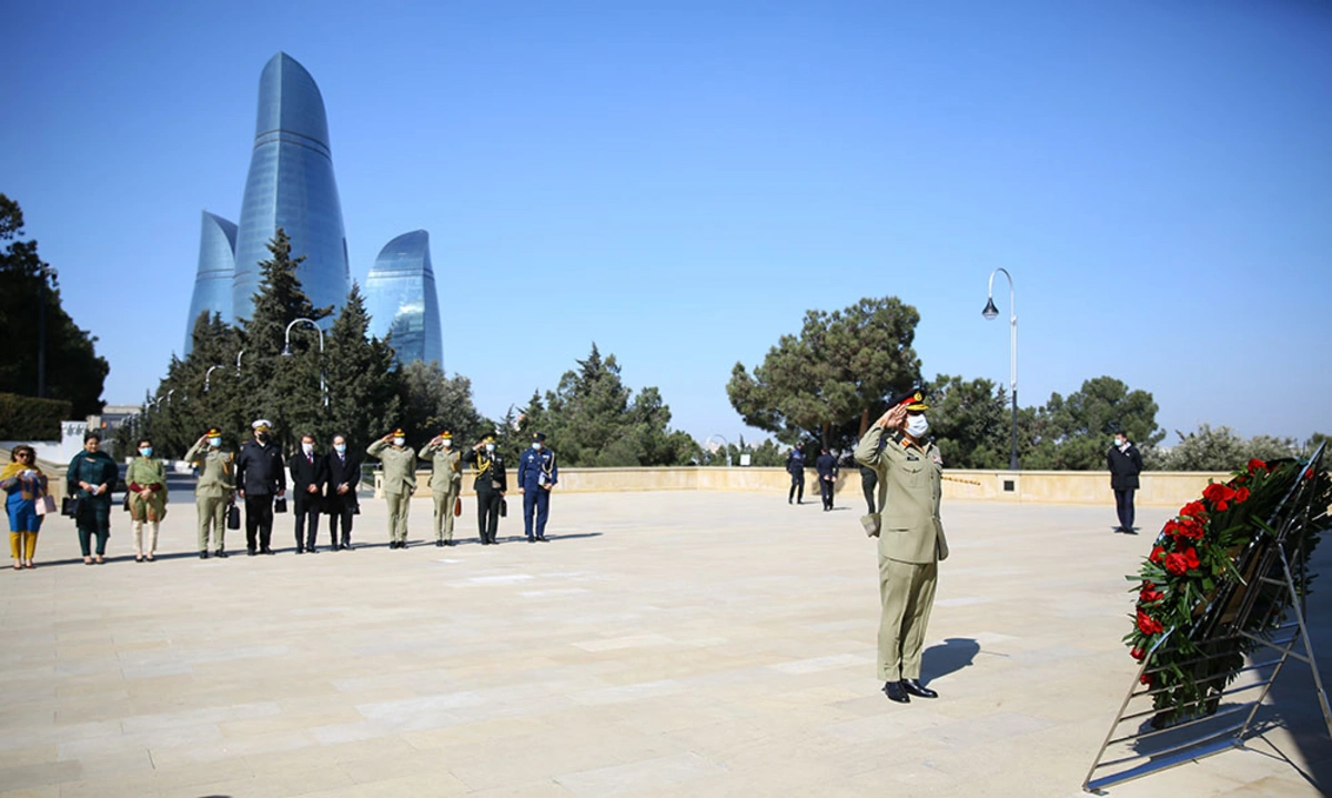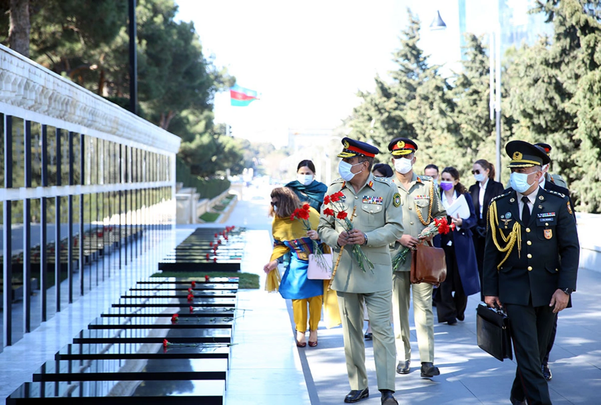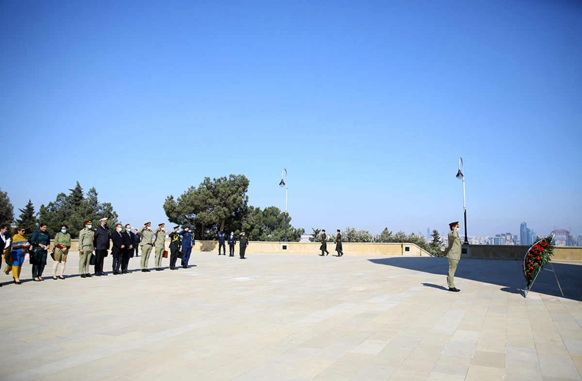 Əvvəlcə qonaqlar Şəhidlər xiyabanında ölkəmizin müstəqilliyi, ərazi bütövlüyü uğrunda şəhid olmuş vətəndaşlarımızın məzarlarını ziyarət edərək əklil və gül dəstələri qoyub.