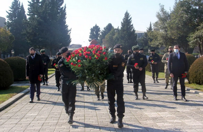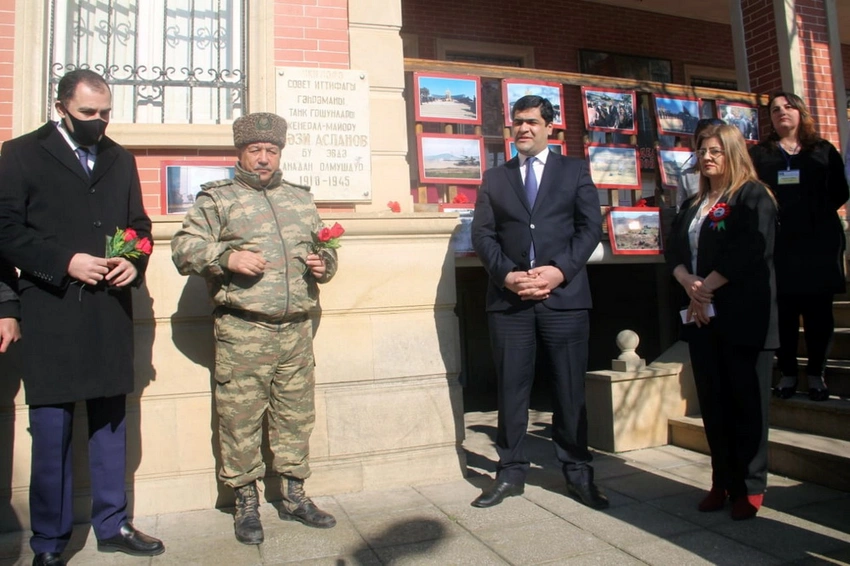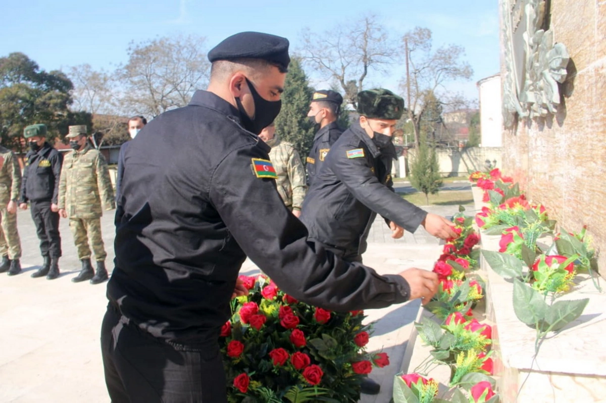 Tədbir iştirakçıları əvvəlcə şəhərin mərkəzində Həzi Aslanov adına Xatirə parkında görkəmli hərbi xadimin abidəsi qarşısına əklil qoyaraq xalqımızın qəhrəman oğlunun, həmçinin şəhidlik zirvəsinə ucalan vətən övladlarının xatirəsini ehtiramla yad ediblər.