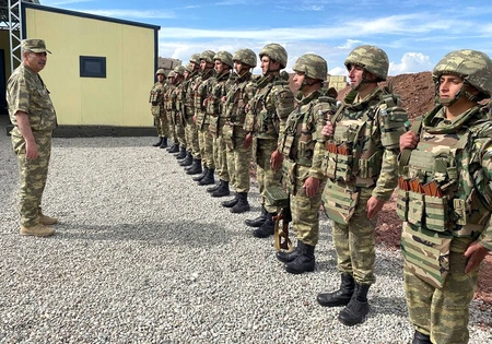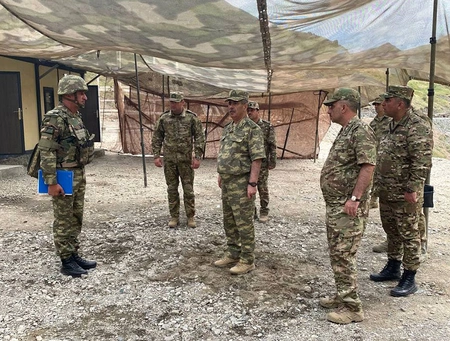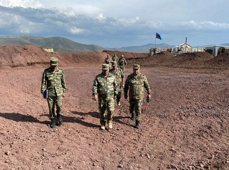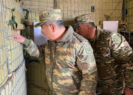 Ermənistan silahlı qüvvələrinin bölmələri ilə üzbəüz mövqelərdə 3000 metr yüksəklikdə döyüş növbəsi çəkən şəxsi heyətlə görüşən müdafiə naziri müdafiənin dayanıqlığı, hərbi qulluqçuların döyüş və mənəvi-psixoloji hazırlığını yoxlayıb, komanda-müşahidə məntəqəsindən qarşı tərəfin mövqelərini izləyib.