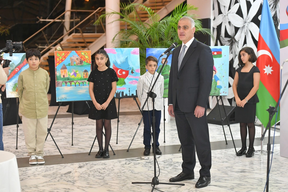 Tədbir iştirakçıları şəhid övladlarının çəkdiyi rəsmlərlə tanış olublar və həmin rəsmlər əsasında hazırlanan poçt markalarının söndürülməsi uşaqların özləri tərəfindən həyata keçirilib.