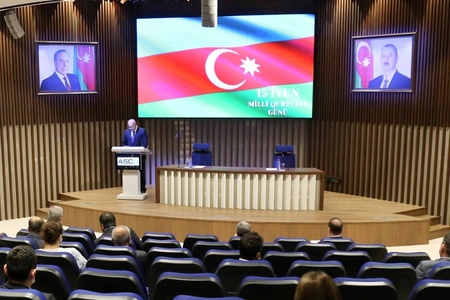 Sonra çıxış edən ASCO sədri Rauf Vəliyev Azərbaycan tarixində mühüm rol oynayan 15 iyun - Milli Qurtuluş günü barədə ətraflı məlumat verib. O, bildirib ki, 1993-cü ildə ulu öndər Heydər Əliyevin ikinci dəfə hakimiyyətə qayıdışı ölkəmizi böyük bir fəlakətdən xilas edib, vətəndaş müharibəsinin, dövlətçiliyin məhv olmasının və ölkənin parçalanmasının qarşısı alınıb.