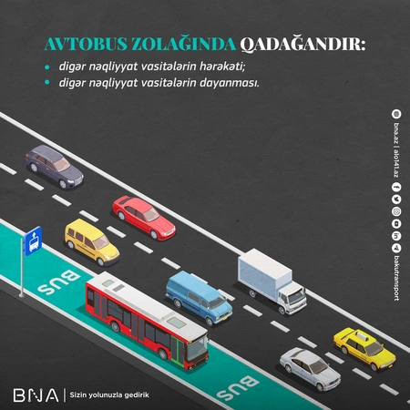 “Artıq zolağın tələbinə uyğun ərazidə yol nişanları və onun qüvvədə olmasını bildirən əlavə məlumat lövhələri qoyulub. Bunu nəzərə alaraq sürücülərdən xahiş edirik ki, məlumat lövhəsində göstərilən müddətdə, yəni səhər saat 07:00-dan axşam saat 20:00-dək yol nişanın tələbinə əməl etsinlər. Zolağın tələbinə əməl edib avtobusların sərbəst hərəkətinə imkan yaradacağınıza ümid edir və buna görə əvvəlcədən təşəkkürümüzü bildiririk”, - məlumatda qeyd olunub.