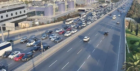 Bakının bir çox yollarında nəqliyyatın sıxlığı müşahidə olunur