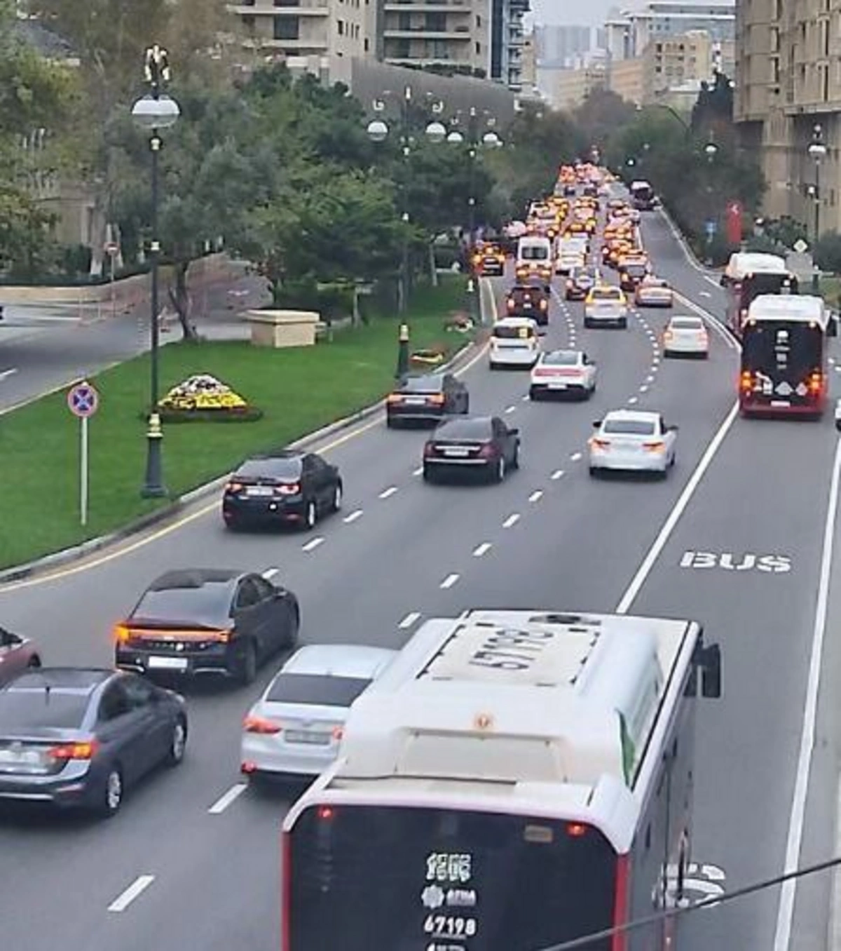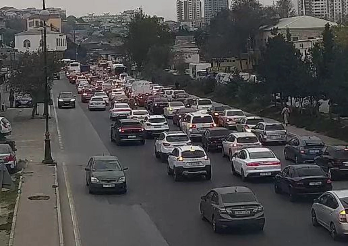 Bakının bir sıra yollarında nəqliyyatın sıxlığı yaranıb.
