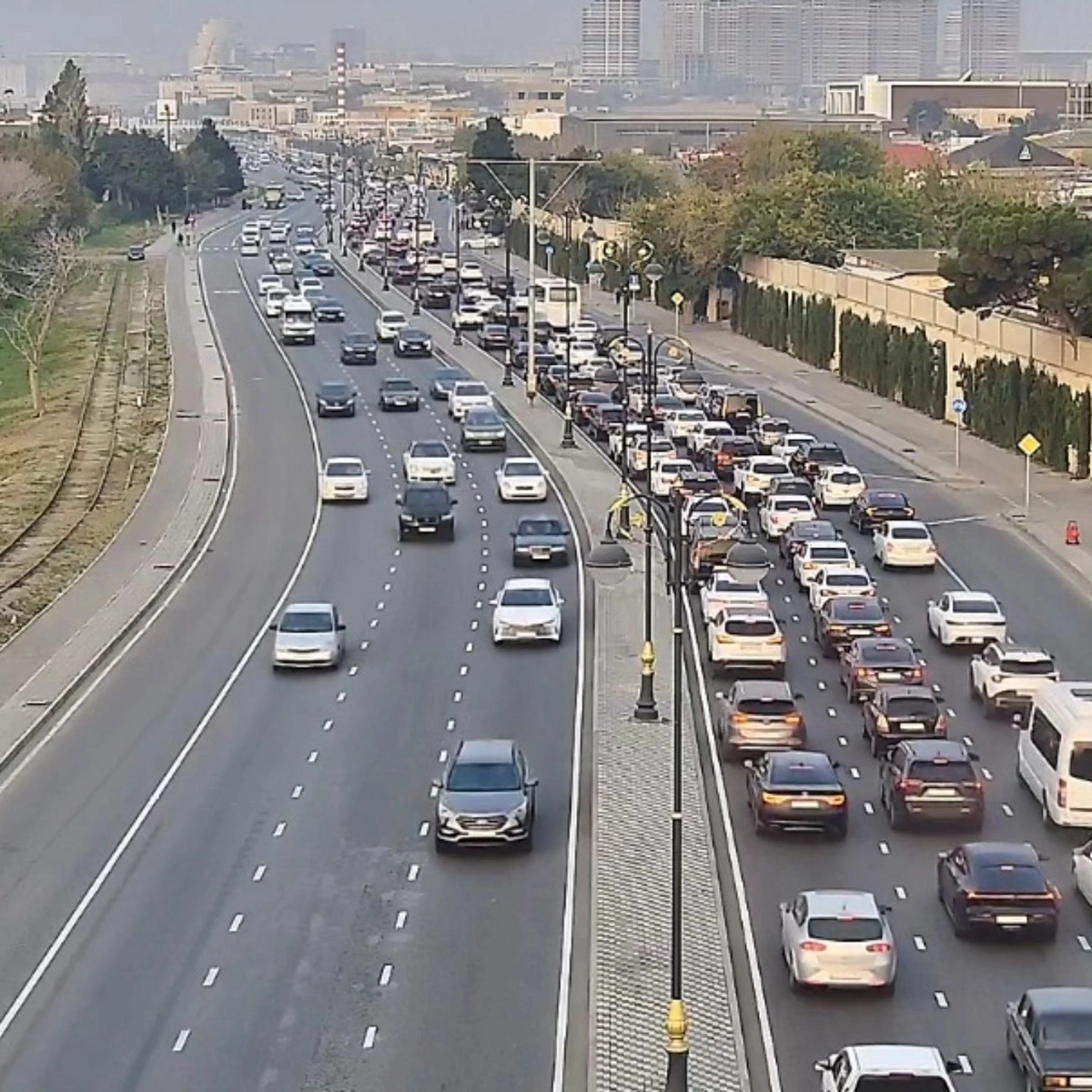 Bakının bir sıra yollarında nəqliyyatın sıxlığı yaranıb