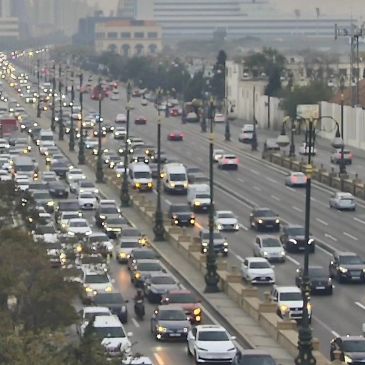 Bakının bir sıra yollarında nəqliyyatın sıxlığı yaranıb