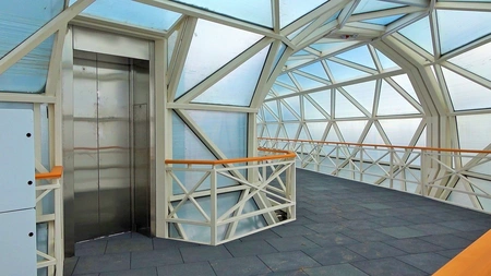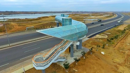 Konstruksiyası metal, bəzək materialı alüminium kompozit panel və örtükdən ibarət olan yerüstü piyada keçidində fiziki məhdudiyyətli insanların rahatlığını təmin etmək üçün 2 müasir lift quraşdırılıb.