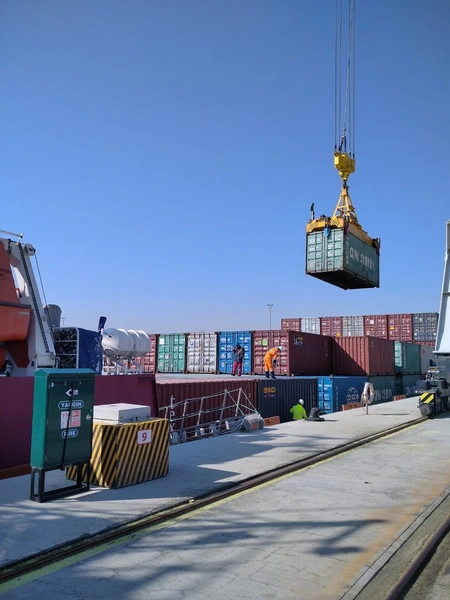Məlumata görə, bu gün səhər saatlarında Azərbaycan paytaxtına çatan gəmidən konteynerlər sürətli şəkildə aşırılır. Bu gəmi vasitəsi ilə ilk səfər çərçivəsində 125 konteyner daşınıb ki, onlardan 123-ü ölkəmizdən tranzit keçməklə dəmir yolları ilə Türkiyə və İtaliyaya daşınacaq, 2 konteyner isə idxal üçün nəzərdə tutulub. Bu konteynerlərin 85 ədədində tomat pastası, digər konteynerlərdə isə qarışıq məhsullar daşınır.