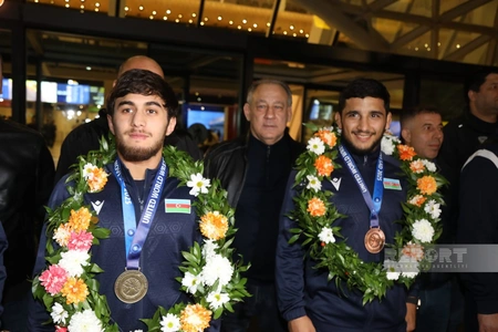 Serbiyanın Novi Sad şəhərində keçirilən U-23 dünya çempionatını komanda hesabında üçüncü yerdə başa vuran Azərbaycanın yunan-Roma güləşçiləri Vətənə qayıdıblar.