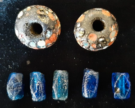 Küpün içərisindən çoxlu sayda müxtəlif tipli və ölçülü muncuqlar və skeletin qulağında bir cüt, üzərində qaynaqlama üsulunda üzüm təsviri formasında hazırlanmış qızıl sırğalar tapılıb.