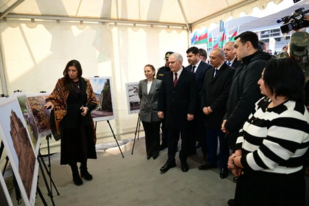Qonaqlara sərgilər haqqında ətraflı məlumat verilib. Qeyd olunub ki, Azərbaycan Fotoqraflar Birliyinin təşkil etdiyi "Kəlbəcər – obyektivdən tarixə" adlı fotosərgidə qurumun üzvü olan fotoqrafların Kəlbəcərə həsr edilən əsərləri yer alıb. Fotolarda Kəlbəcərin işğaldan əvvəlki və sonrakı dövləri, füsunkar təbiət mənzərələri, tarixi abidələri, eləcə də 44 günlük Vətən müharibəsi və birgünlük antiterror əməliyyatı ilə işğaldan azad edilmiş ərazilərdə aparılan bərpa və quruculuq işləri əksini tapıb. Sərgi Kəlbəcərin keçmişi, bu günü və parlaq gələcəyi arasında canlı körpü yaradan vizual hekayələrlə ziyarətçilərə tarixin şahidi olmaq imkanı yaradır.