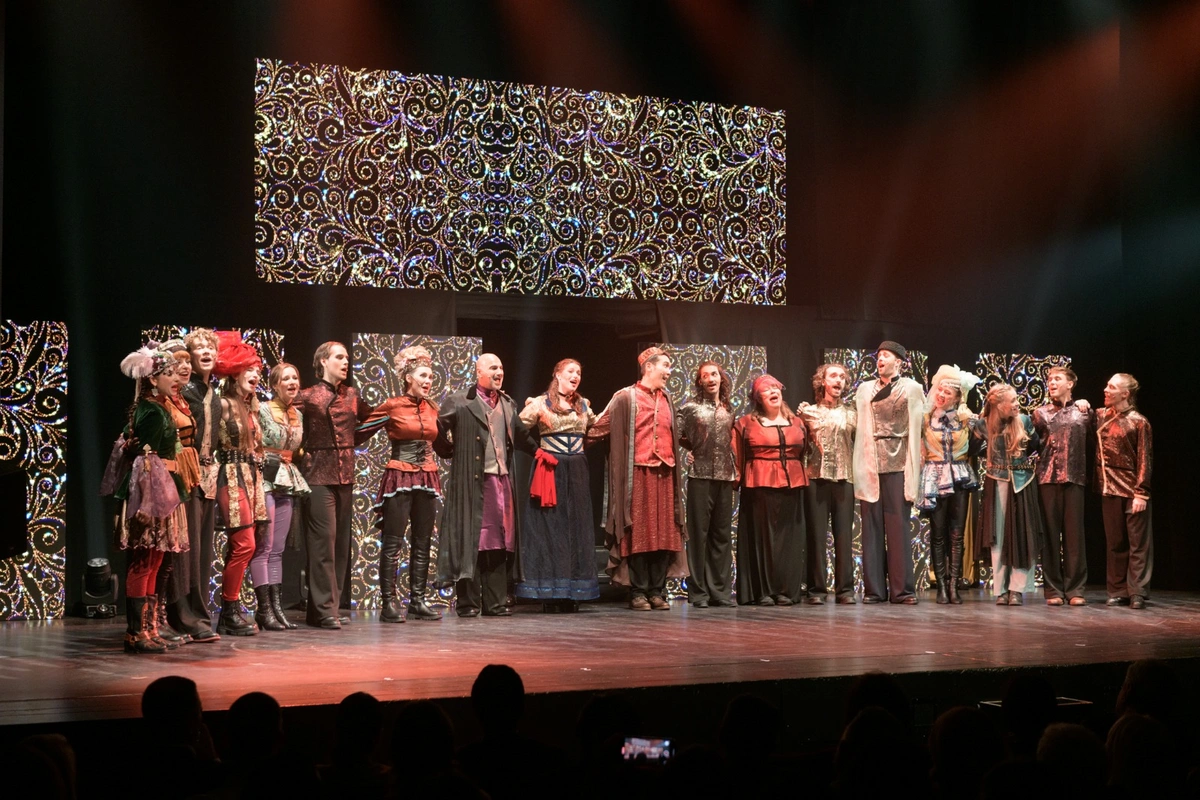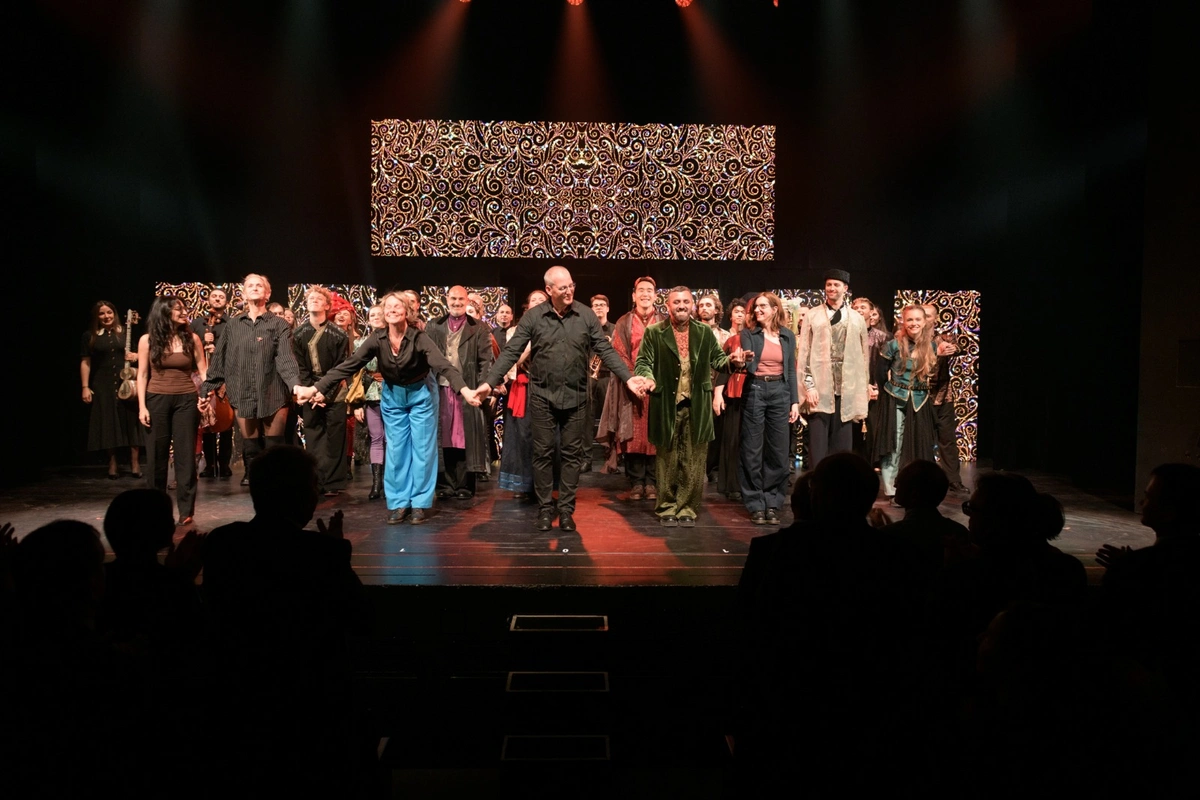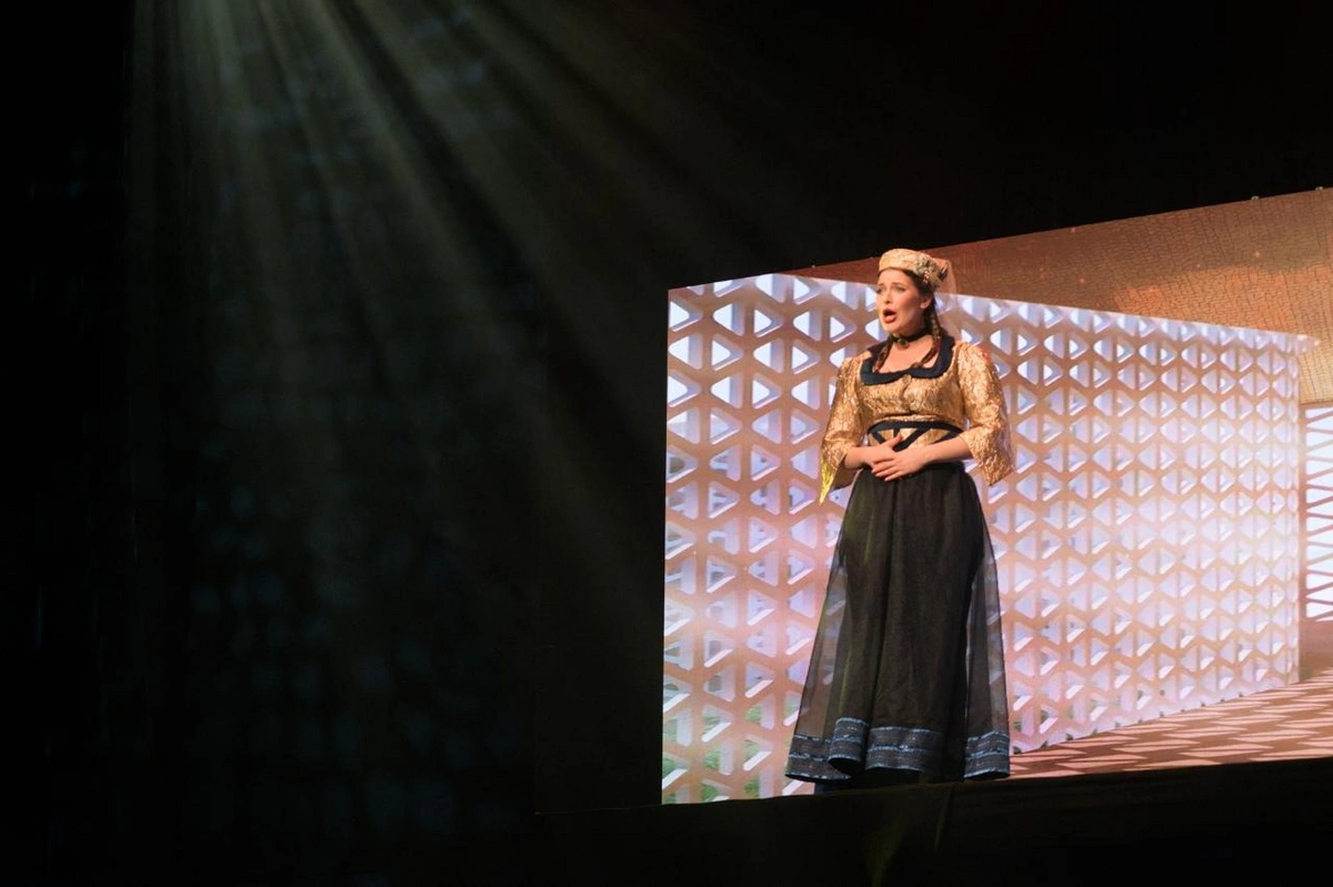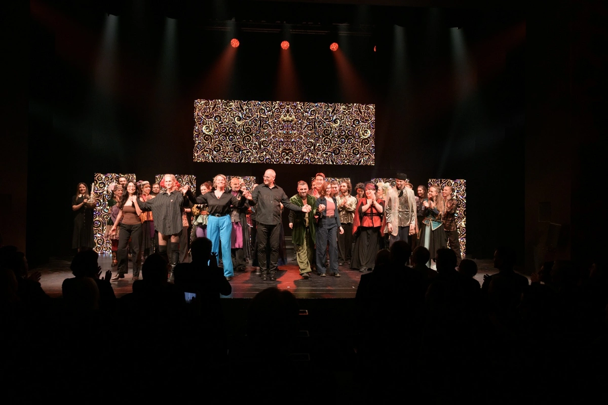 Daha sonra tamaşa nümayiş olunub. Alman dilində təqdim edilən tamaşa tanınmış rejissor Rita Serayniq və dirijor, bəstəkar Maykl Şnakın bədii rəhbərliyi altında tamamilə yerli yaradıcı heyətin iştirakı ilə hazırlanıb. Səhnə rəssamı və vizual elementlərin dizayneri Kristian Ariel Heredia, geyim rəssamı Vüsal Rəhim, xoreqrafı Suzanne Rietsdir.