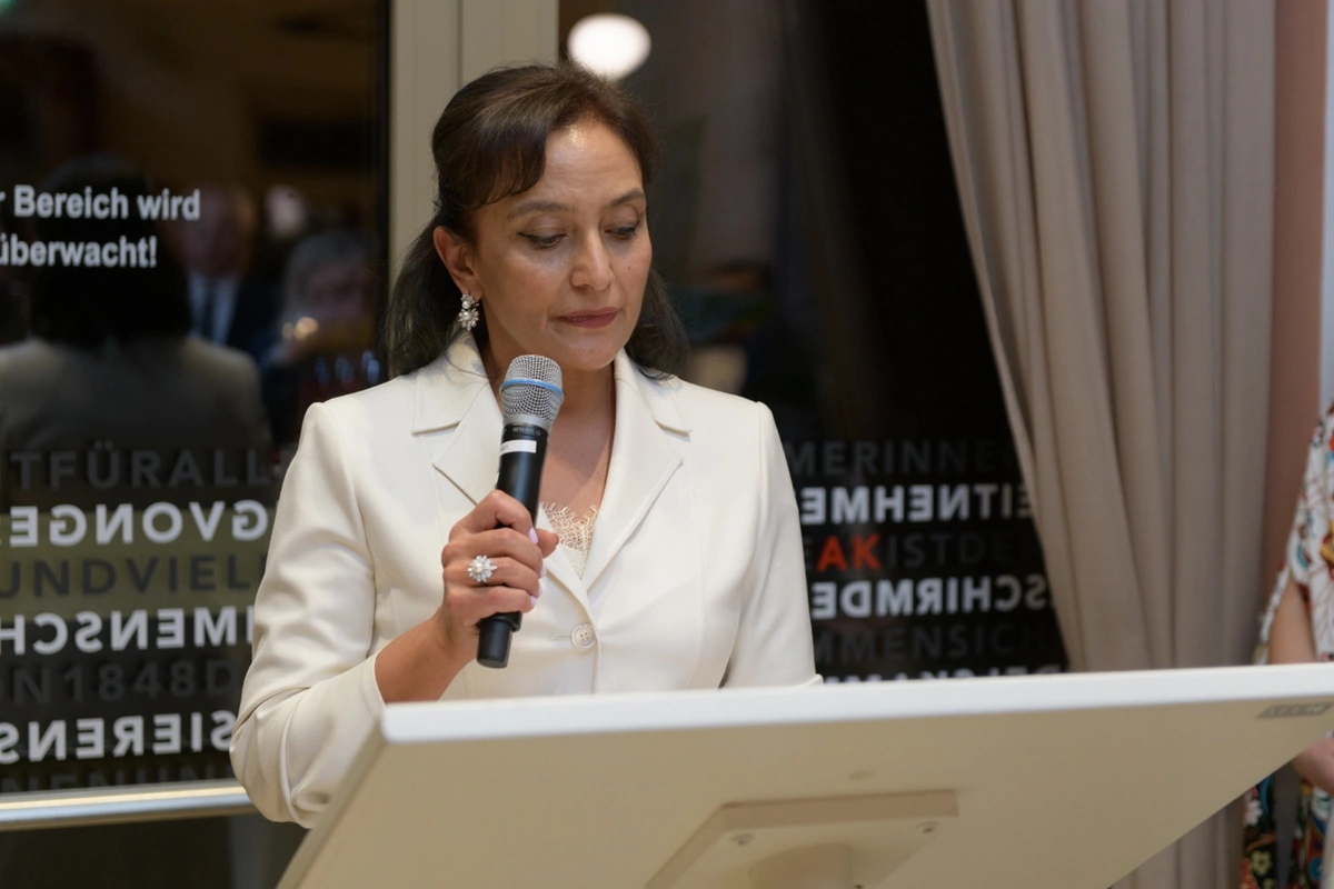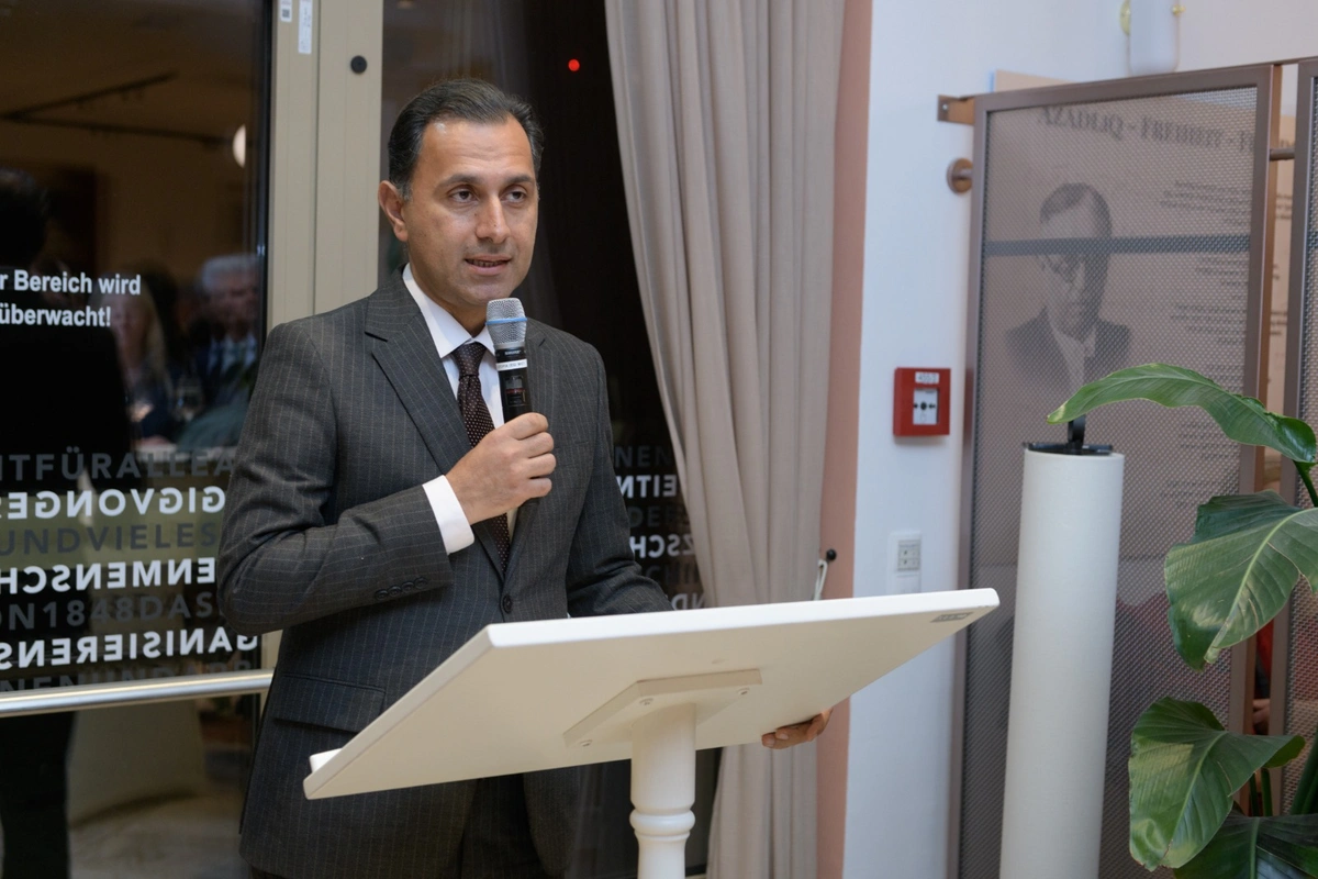 Məlumata görə, əvvəlcə mədəniyyət nazirinin müavini Murad Hüseynovun rəhbərlik etdiyi nümayəndə heyəti dahi bəstəkarın Vyananın Dunay parkında qoyulmuş abidəsini ziyarət edərək önünə çiçək dəstələri qoyub. Sonra teatrın foyesində Üzeyir Hacıbəylinin həyat və yaradıcılığına həsr olunmuş fotosərgi açılıb. Vyanadakı Azərbaycan Mədəniyyət Mərkəzinin rəhbəri Leyla Qasımova çıxış edərək Üzeyir Hacıbəylinin Azərbaycan mədəniyyətində tutduğu mövqedən danışıb.