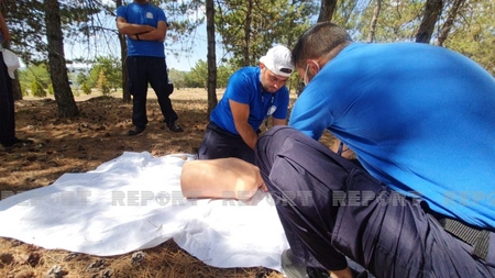 "Report" xəbər verir ki, təlimin ikinci günündə müharibə dönəmində ilkin tibbi yardım tədris olunub.