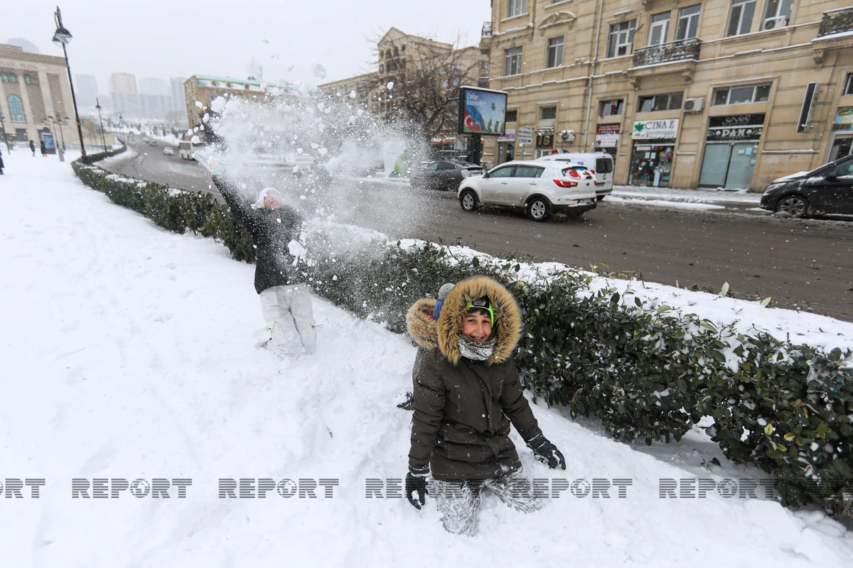 "Report" xəbər verir ki, yağan qar və şaxtalı hava şəraiti bir sıra fəsadlar törədib. Bununla yanaşı, bir neçə il fasilədən sonra ilk dəfə Bakıya yağan qar şəhərin azyaşlı sakinlərinin sevincinə səbəb olub.