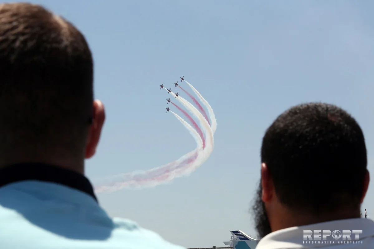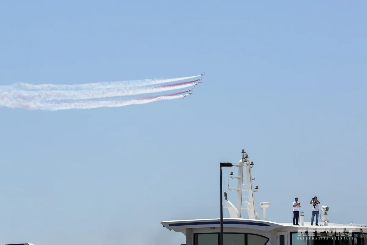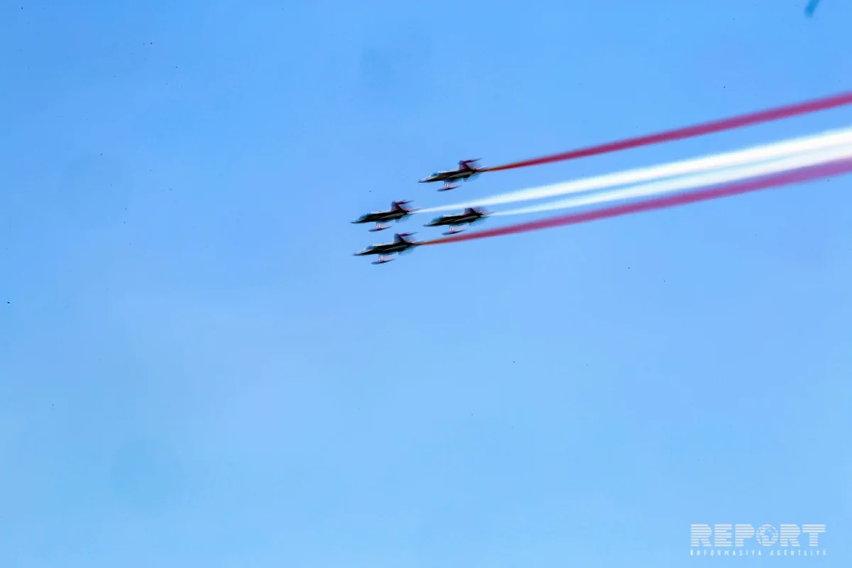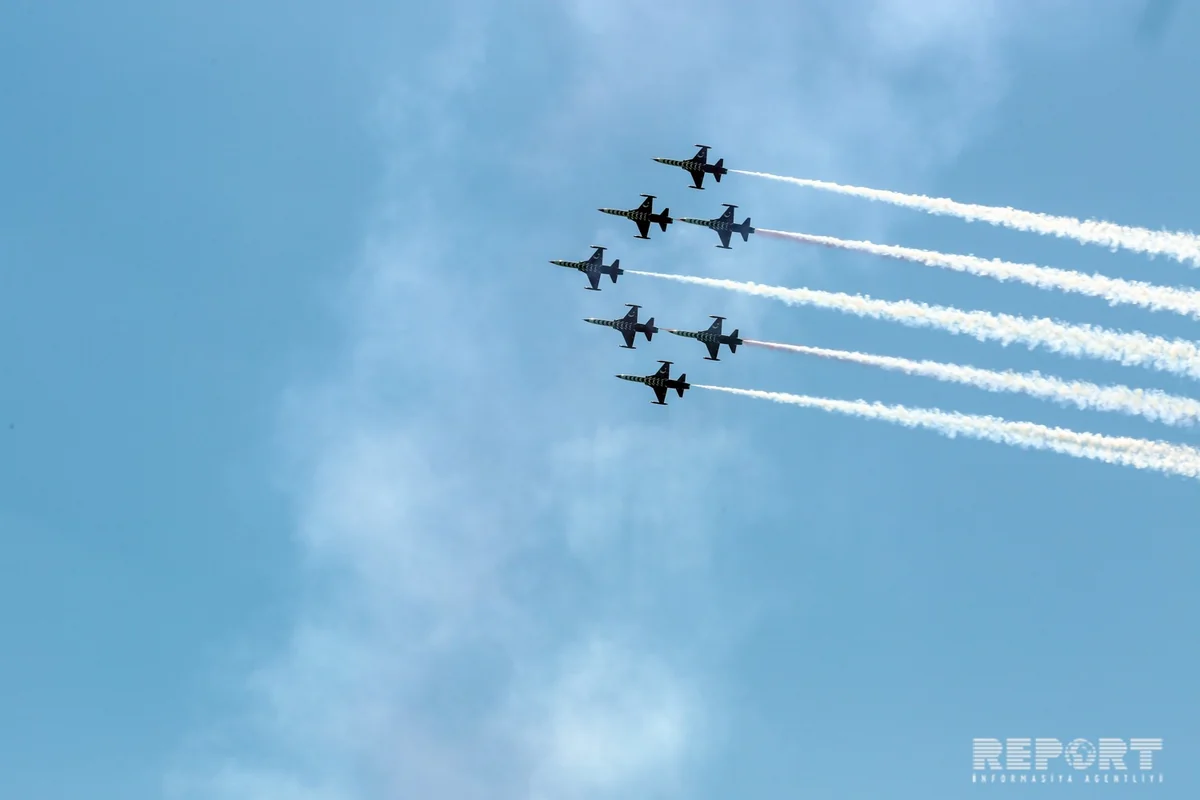 Bundan başqa, Türkiyə Hərbi Hava Qüvvələrinin “Türk Ulduzları” aviasiya qrupuna daxil olan təyyarələr Bakı buxtası üzərində nümunəvi uçuşlar keçirib. Nümunəvi uçuşlarda “Solo Türk” və “Türk Ulduzları” aviaqrupuna daxil olan 2 ədəd F-16 və 8 ədəd F-5 tipli təyyarələri iştirak edib.