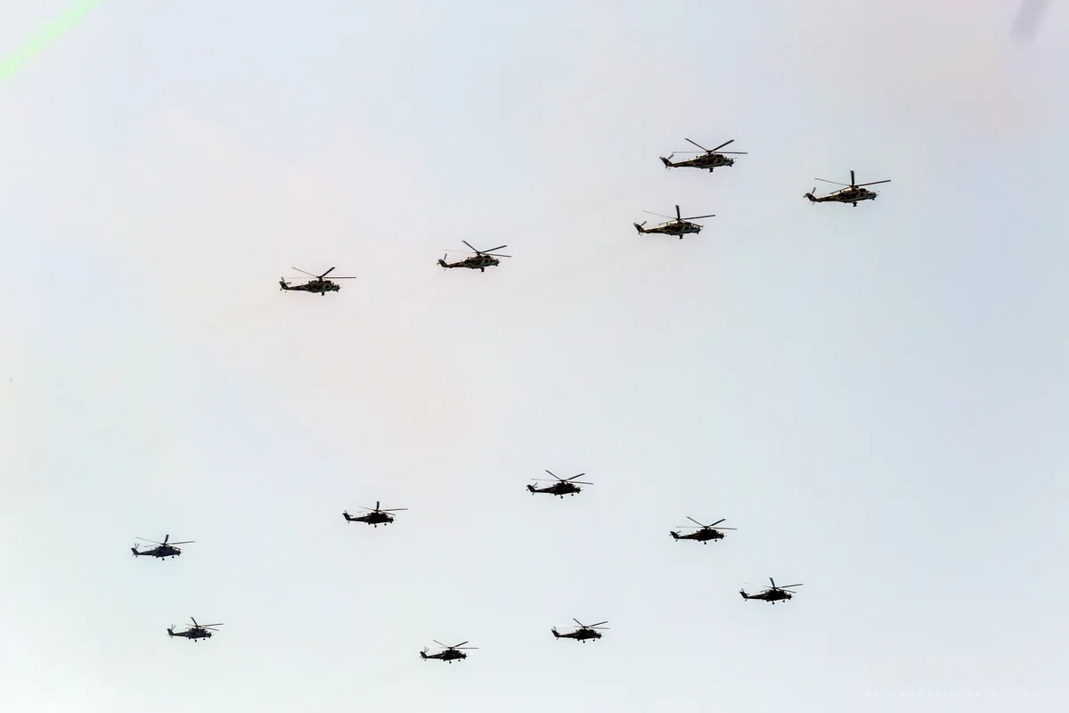 Bakı. 26 iyun. REPORT.AZ/ Azərbaycan Ordusunun 100 illik yubileyi ilə əlaqədar keçirilən parad çərçivəsində Hərbi Hava Qüvvələrinin aviasiya vasitələri Bakı şəhəri üzərində uçuşlar keçirib. Hərbi təyyarə və helikopterlər mürəkkəb aviaşoular yerinə yetirib.
