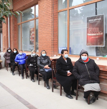 Vətəndaşlar banka yaxınlaşaraq plastik kartları təhvil alıblar.