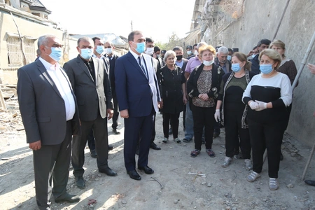 Niyazi Bayramov raket zərbəsi nəticəsində dağılan ərazidə də olub, burada erməni terrorundan zərər görən sakinlərlə görüşüb. Şəhər rəhbəri bildirib ki, evləri tamamilə dağıdılmış ailələr müvəqqəti yaşayış sahəsi ilə təmin ediliblər. Bununla yanaşı, həmin sakinlər istəkləri üzrə gündəlik tələbat malları, eləcə də geyimlərlə təmin olunurlar.