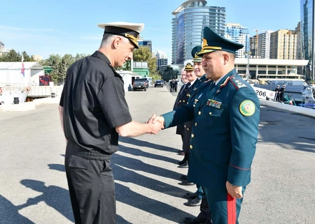 Пограничный сторожевой корабль "Расул Гамзатов" Береговой охраны ФСБ России 23 сентября зашел в порт Баку.