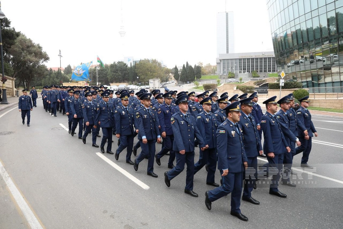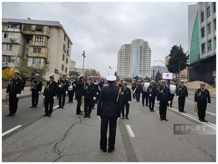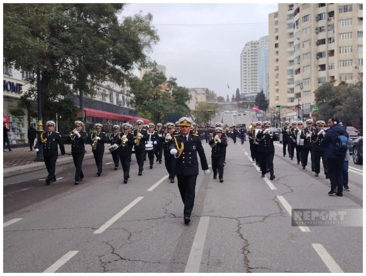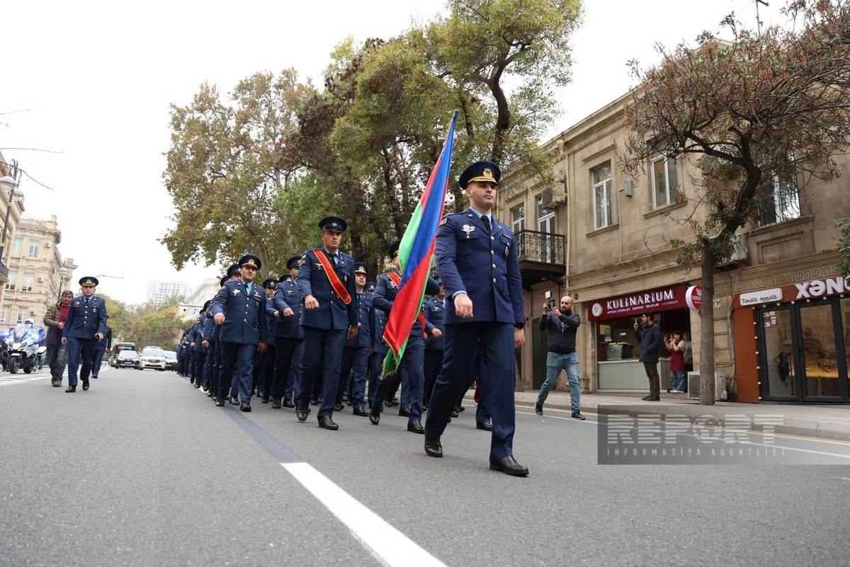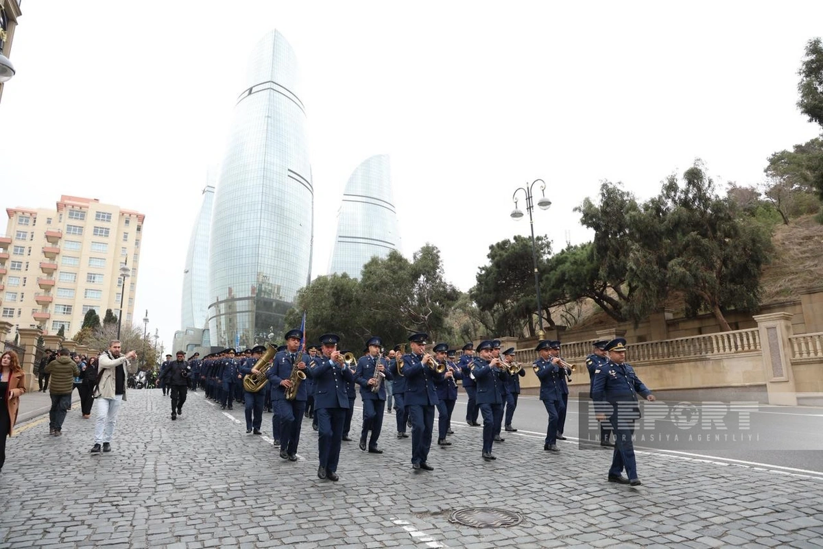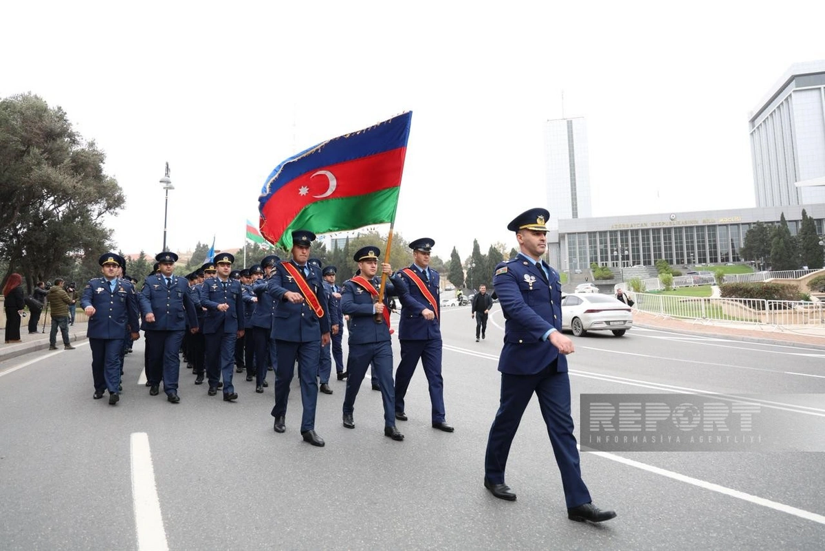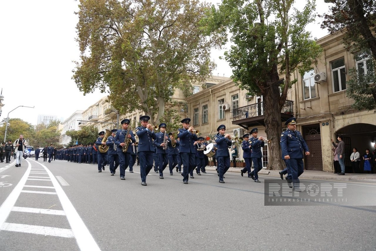 Марш в сопровождении военных оркестров проходит по маршруту: парк Газанфара Мусабекова - улица Абдуррагим бека Хагвердиева - проспект Гусейна Джавида - парк Гусейна Джавида - Парламентский проспект - Аллея шехидов.