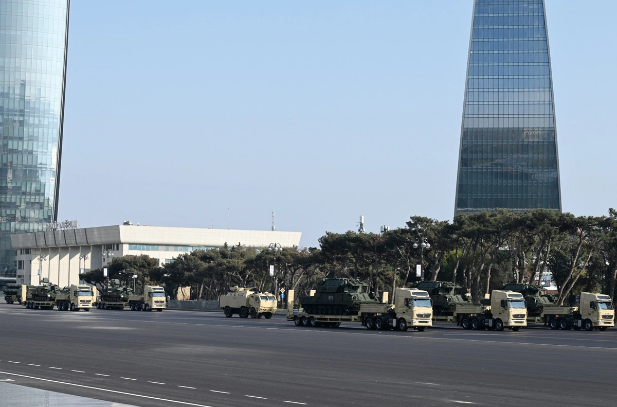 В Баку на площади Азадлыг продолжается военный парад, посвященный 5-летию Победы в 44-дневной Отечественной войне.