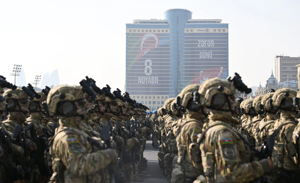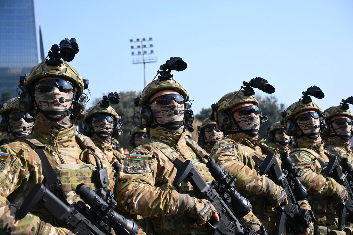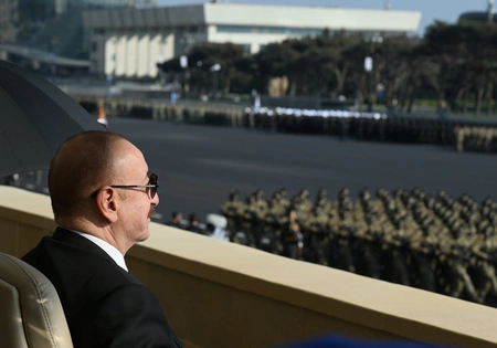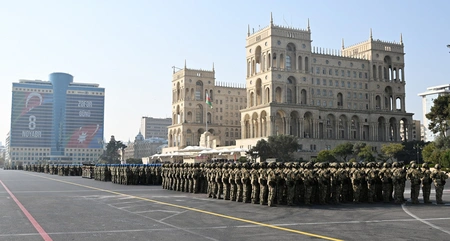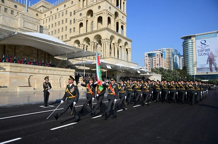 В Баку проходит военный парад, посвященный 5-летию Победы в 44-дневной Отечественной войне.