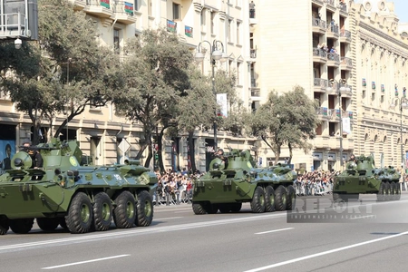 В настоящее время проходит шествие военнослужащих. Военным парадом руководит первый заместитель министра обороны – начальник Генерального штаба Азербайджанской армии, генерал-полковник Керим Велиев.