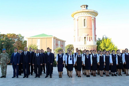 Минутой молчания была почтена память общенационального лидера азербайджанского народа Гейдара Алиева и шехидов, отдавших жизнь во имя Родины, прозвучал Государственный гимн.