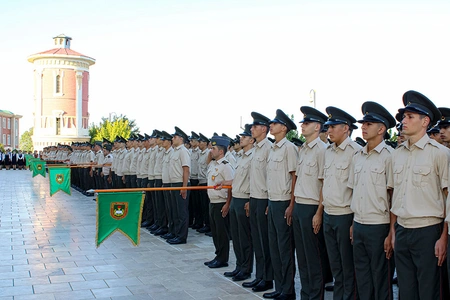 Затем курсанты торжественно присягнули на верность Родине и под звуки военного марша прошли перед трибуной.