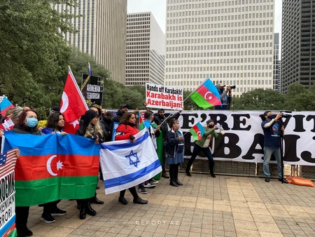 Как передает зарубежный корреспондент Report, во время акции проходящей перед зданием администрации города Хьюстон члены общины осудили последний ракетный удар Армении по азербайджанскому городу Барда, геноцид Еревана в отношении невинных мирных жителей, призвали Администрацию США признать Армению как государство-агрессор, отметили, что Нагорный Карабах – земля Азербайджана, рассказали американцам азербайджанские реалии.