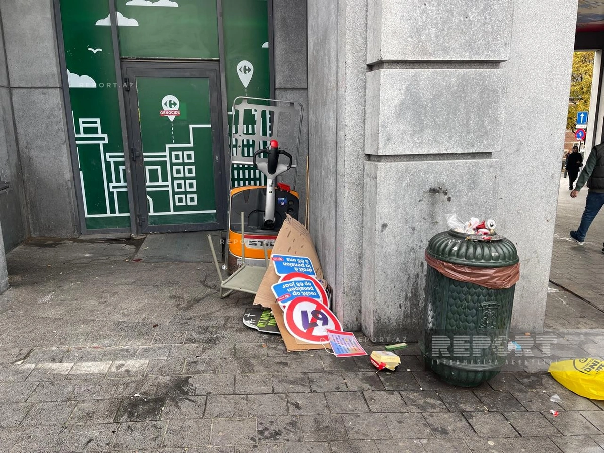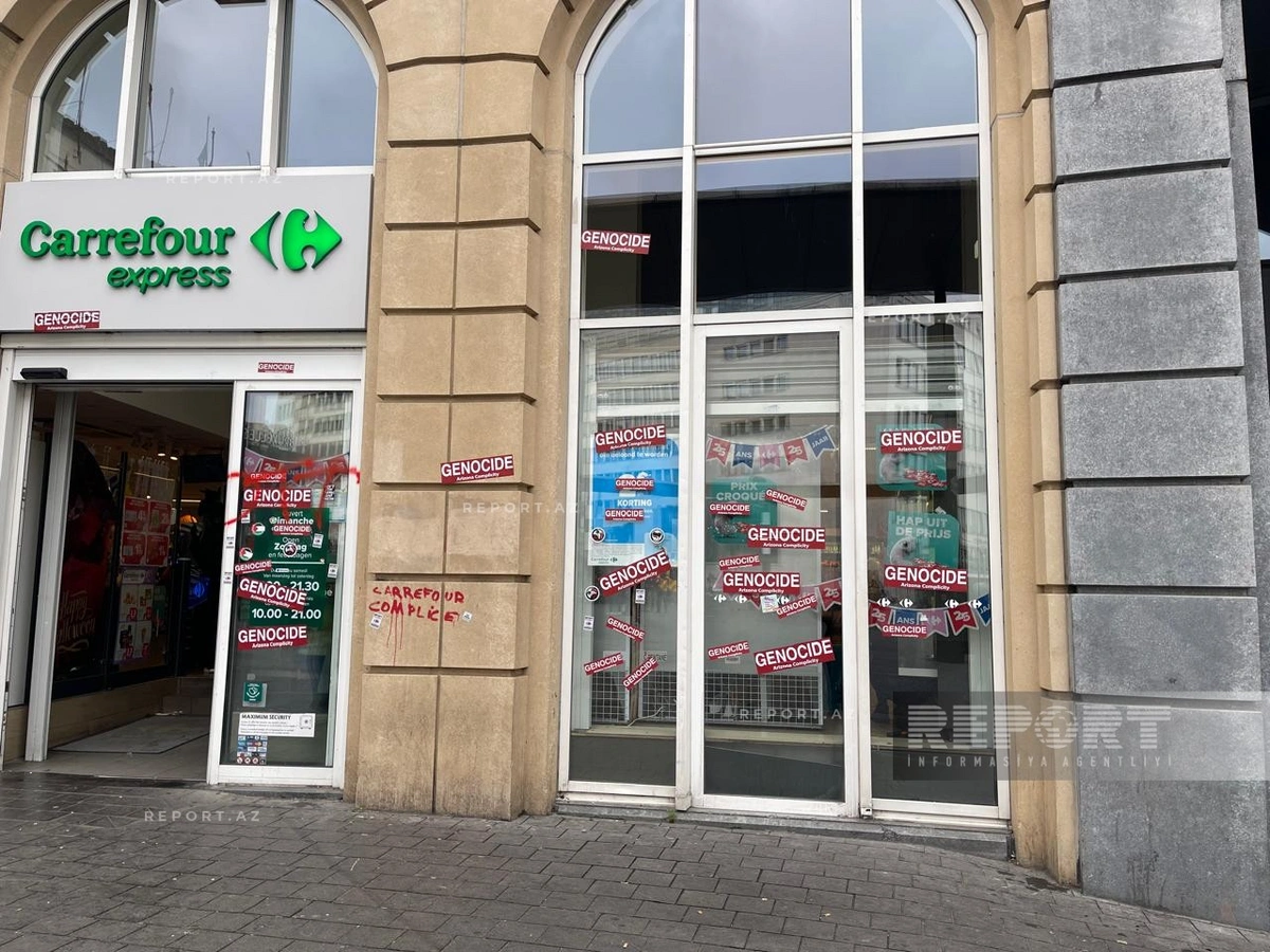 Вандалы также атаковали вход в отель Hilton у Центрального вокзала. Витрины расположенного напротив магазина Carrefour были оклеены наклейками со словом "Геноцид", предположительно сторонниками Палестины.