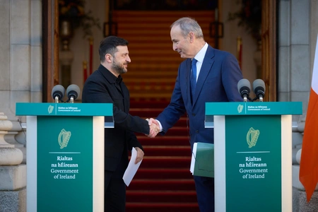 Президент Украины Владимир Зеленский во время визита в Дублин обсудил с премьер-министром Ирландии Михолом Мартином возможность выделения замороженных российских активов на поддержку обороны и восстановления страны.