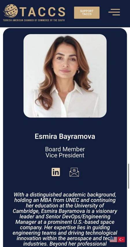 Руководитель Азербайджанской общины Флориды Эсмира Байрамова избрана вице-президентом Южной турецко-американской торговой палаты.