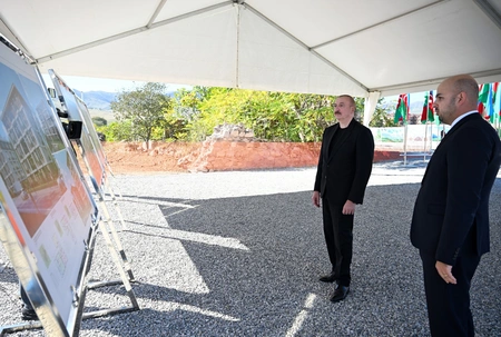 Президент Азербайджанской Республики Ильхам Алиев заложил фундамент второго и третьего жилых комплексов в городе Джебраил.
