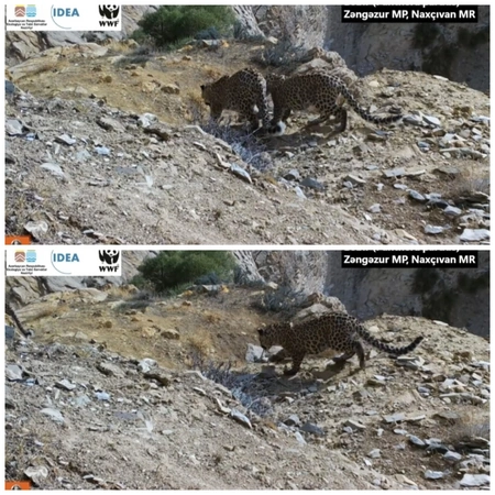 Как сообщает карабахское бюро Report, на официальной странице в социальных сетях представительства Всемирного фонда дикой природы (WWF) в Азербайджане опубликованы кадры самки леопарда с потомством в Зангезурском национальном парке имени академика Гасана Алиева.