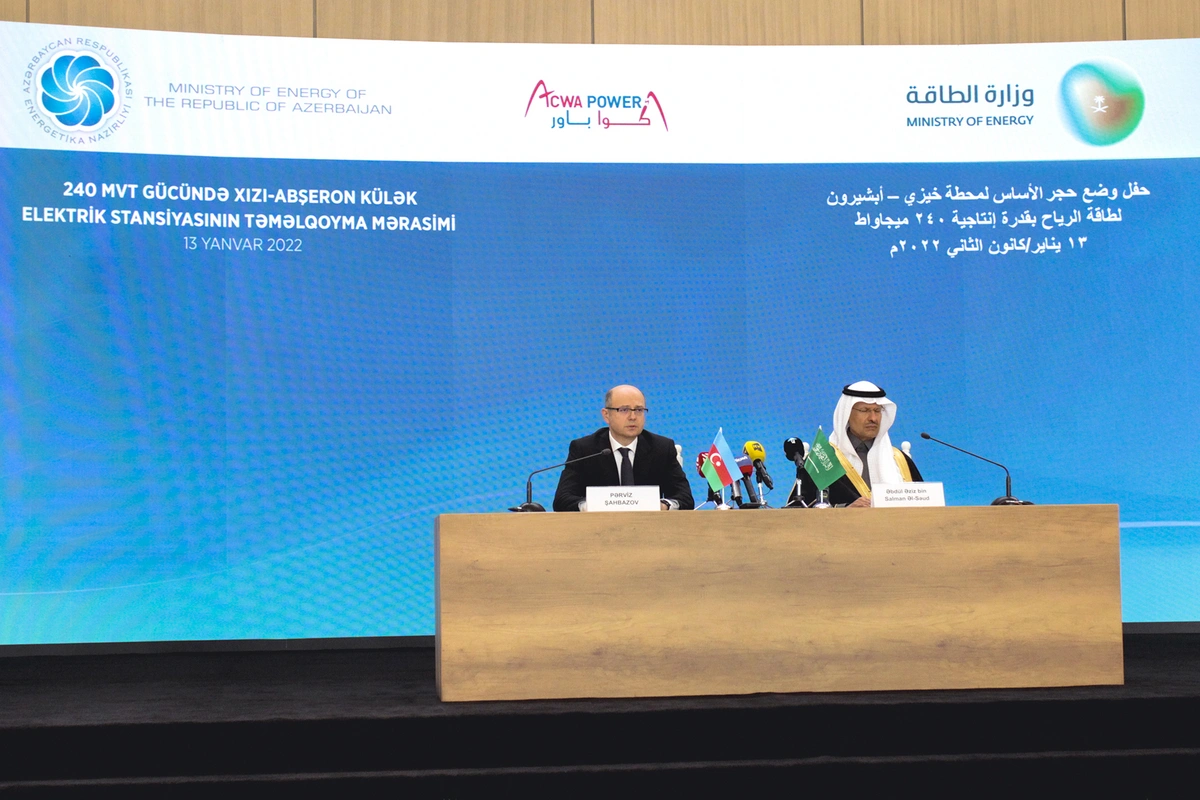 В рамках церемонии закладки фундамента Хызы-Абшеронской ветряной электростанции мощностью 240 МВт между Министерством энергетики и компанией ACWA Power Саудовской Аравии был подписан Меморандум о взаимопонимании по сотрудничеству в области морской ветроэнергетики.