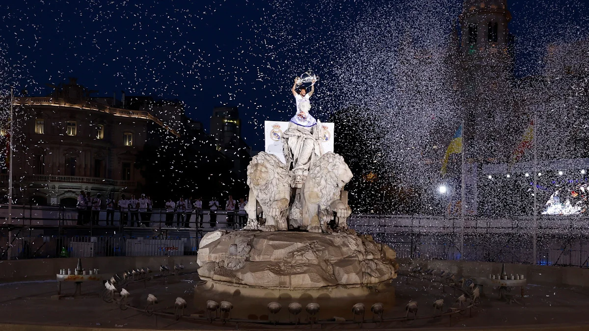 Подопечные Карло Анчелотти провезли трофей по центру Мадрида. Традиционно празднование титулов «сливочных» проходит на площади Сибелес.