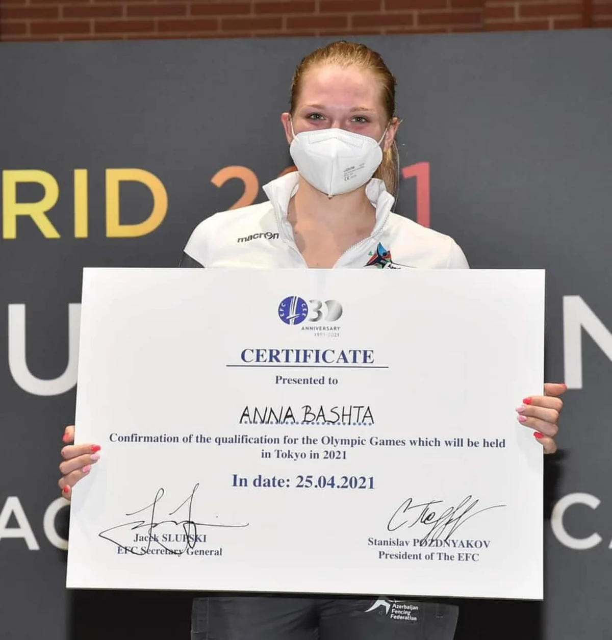 Азербайджанская фехтовальщица Анна Башта завоевала путевку на Олимпийские игры в Токио.