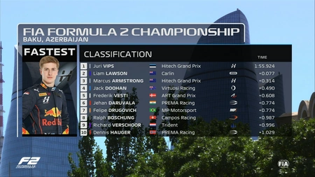 10 июня завершился свободный заезд Формулы-2, проходившей на Бакинском городском кольце в рамках Формулы-1 Гран-при Азербайджана.