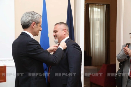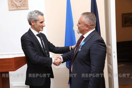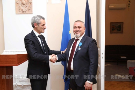 Национальный орден Франции "За заслуги" Э. Зейналову вручил посол Франции в Азербайджане Закари Гросс, который рассказал о деятельности и проектах Alstom в Азербайджане.
