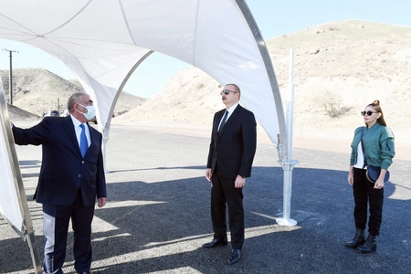 Председатель Государственного агентства автомобильных дорог Салех Мамедов проинформировал главу государства и первую леди о строящихся автомобильных дорогах в Восточно-Зангезурском экономическом районе.
