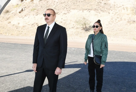Президент Азербайджанской Республики Ильхам Алиев и первая леди Мехрибан Алиева приняли участие в церемонии закладки фундамента дороги Ханлыг-Губадлы, идущей от 10-го километра автодороги Худаферин-Губадлы-Лачын к центру города Губадлы.